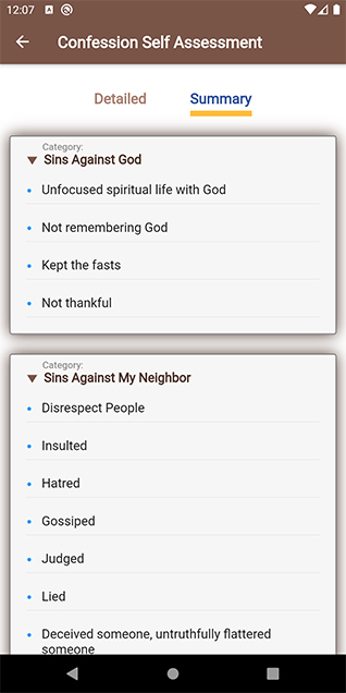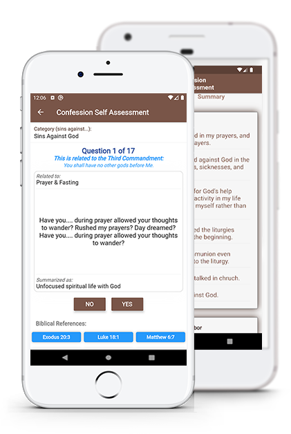 Inspired by the book “Paradise of the Spirit” by his Grace Bishop Youanis of Gharbia, The Confession Planner app helps prepare you in a gentle manner by guiding you through a series of questions with the repentant answering yes or no to each offense.